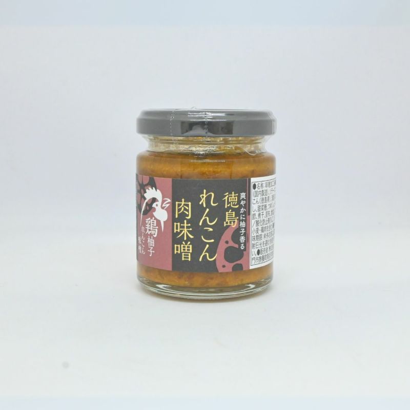 れんこん「(徳島県産)、清酒、味噌、ソテー葱、豚肉、ごま、本みりん、コチュジャン、砂糖、つゆ(しょうゆ、砂糖、かつお節、煮干、昆布、食塩)、にんにく加工品、生姜、かつおだし、紫蘇粉末、酵母エキス、香辛料/酸化防止剤(V.C、V.E)、(一部に大豆、小麦、豚肉、ごまを含む)