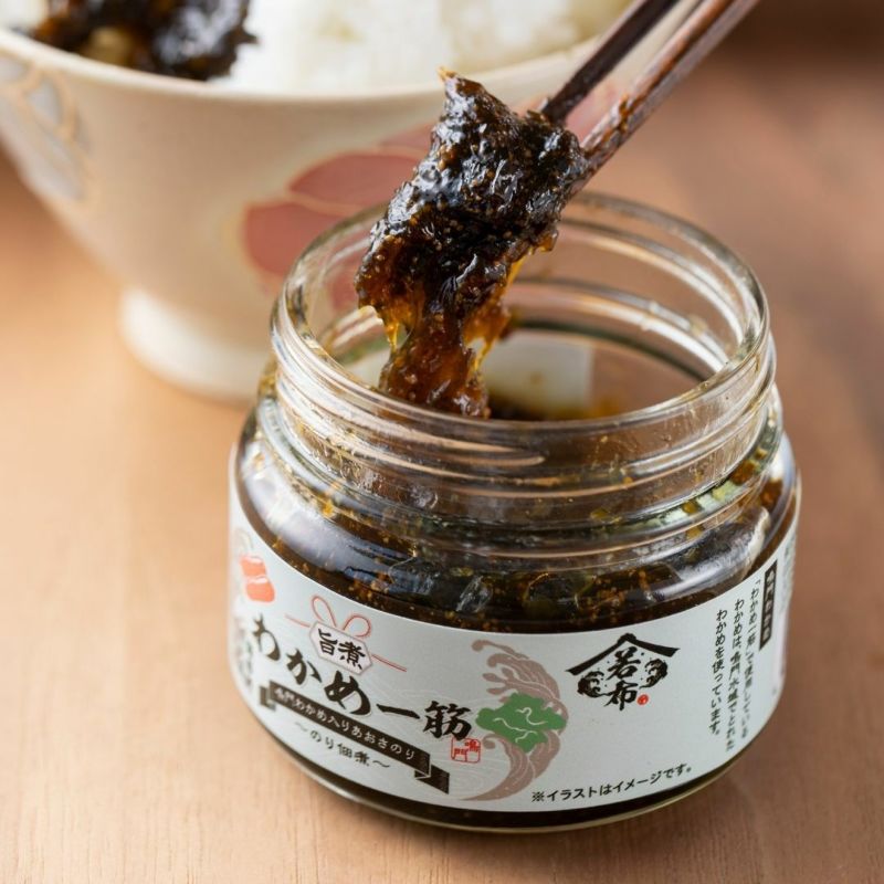 鳴門水域でとれたわかめと舌ざわりの良い国産あおさのりをじっくりと煮込んだのり佃煮。道の駅くるくるなるとの人気No.1「ご飯のお供」。