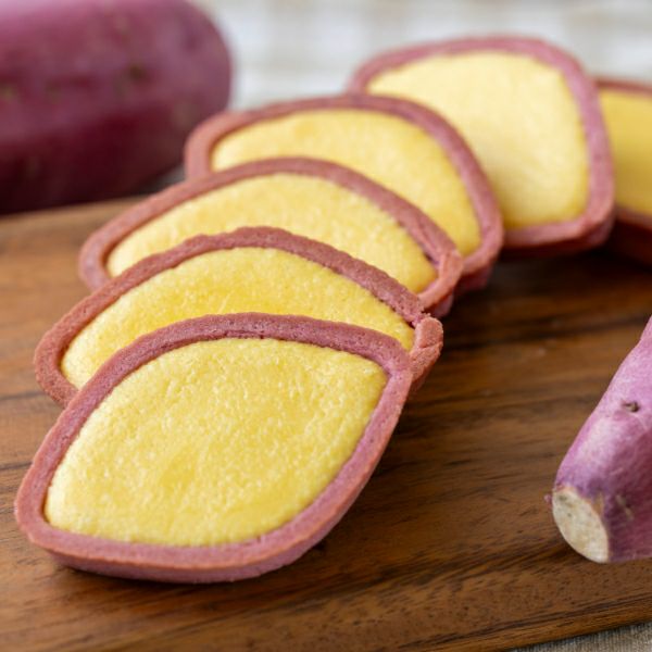 鳴門金時芋パウダーを使用した焼きチョコとホワイトチョコの2層仕立てのタルトクッキーです。