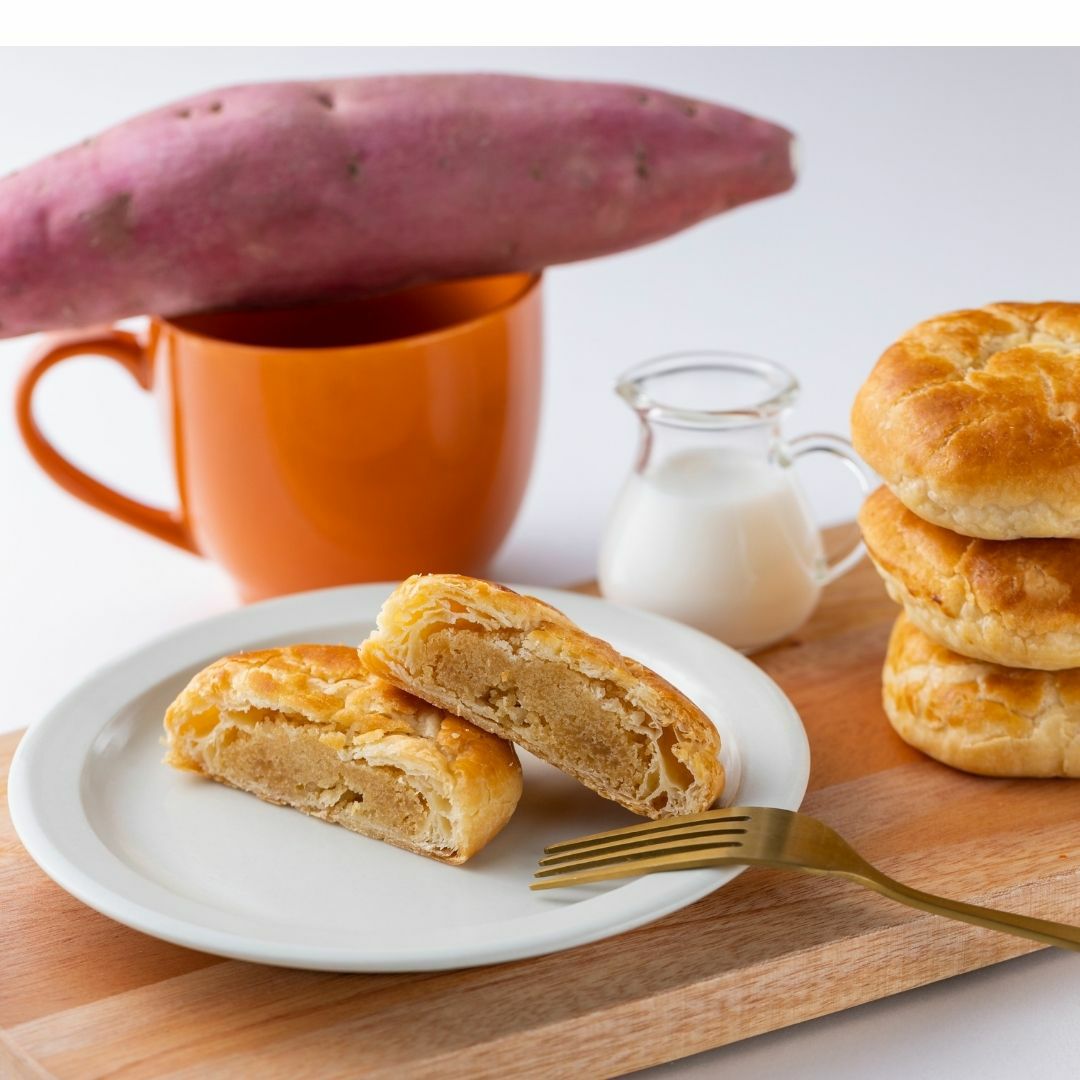 徳島自慢の鳴門金時の上品な甘みと、ホクホクとした味わいの餡をパイに包み込み焼き上げました。